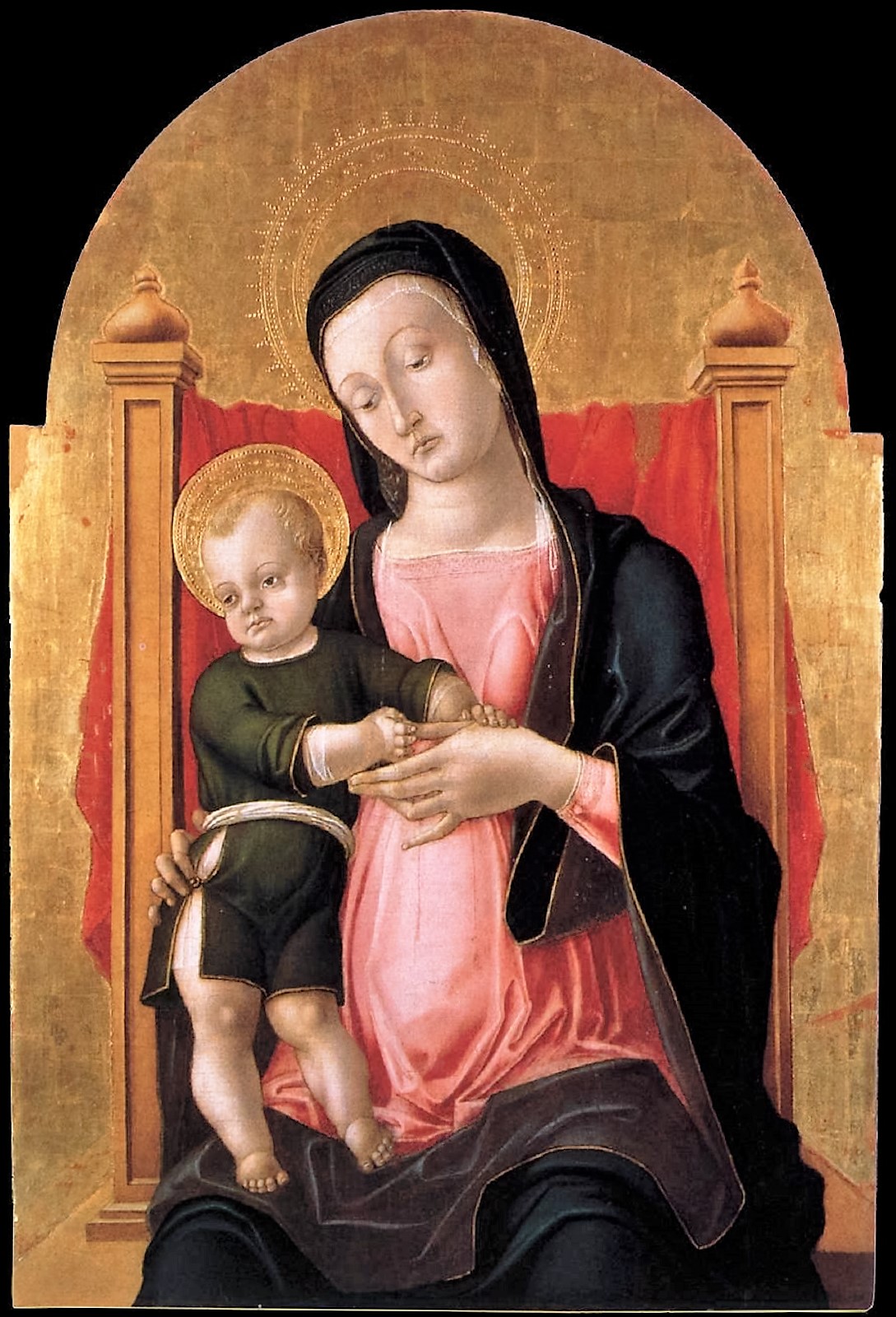 バルトロメオ・ヴィヴァリーニの「聖母子」(左図)もそうです。聖母子の着ている衣装の深い緑と、聖母が下に着ているピンク色、そして二人が座っている椅子に掛けられた赤い布。これらの色の鮮やかさ。それと背後の光輪になるのか金色に輝くのとの対比が目に映えるところ。人物の描き方とか、陰影がつけられて立体感とかいったことは、美術史の学者や美術館の学芸員が理屈をつけてくれればいいので、私の場合のような消費者のような野次馬は、見た目の快楽ということで、ある意味テーマとか何が描かれているとかいったことは、どうでもよくて抽象画のように意味とか形を考えずに色とその組合せを堪能しているといった具合です。もっとも、これらの作品を、単独でこれだけを、わざわざ鑑賞したいと思うことはなくて、この展覧会のようにずらっと並んでいて、作者もタイトルも考えずに、たまたま視野に入った、これらの作品を見て時間を浪費するといったような鑑賞(消費)の仕方に適しているといったものだと思います。