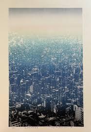 「望首都西郊─梅雨」は1995年の縦長の画面に均質な風景が広がる作品。東京の都市風景を写真製版し、青のグラデーションで摺ったもの。木版のかすれで画業初期に好んだモチーフである雨を表現したということです。個々に至って、彼女には具象も抽象も、写実も幻想もどうでもよく、ただ感性からキレイと感じられればいい、そういう作品になっていると思います。それが、この人の真骨頂ではないでしょうか。