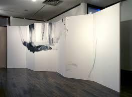 この二つの大作が展示してある壁面から、次の壁面に移ると「五十部の細道図より(冬)」という2007年の作品です。「線の気韻」が隙間なく引かれた垂直線で構成されていたのに対して、この作品では、線というより墨痕という感じで、むしろ余白が多く、その余白の方が雄弁な気がします。抽象的な水墨画といった印象です。会場でパンフレットの中で、この作品について、“五十部(よべ)というのは足利市五十部町で、その山の方をイメージしています。こどもの時に歩いた山に続く道をイメージしています。山道を登ってゆくとそのうち道がどんどん細くなって最後は獣道のようになる。今では人が歩かなくなって、道がなくなって途絶えてしまう。そんな場所を想起しています。”という菊地の言葉がありました。ただ、この作品をみていて、山道をイメージすることはできませんでした。まあ、そういうことは見る人の自由なのですが。