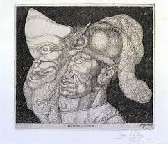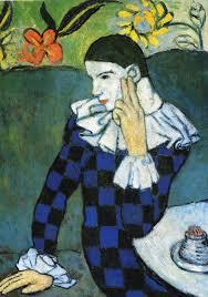 うが展示されていました。クレーとゴヤは、今まではまったく別の方面の画家で結び付けて考えることはありませんでしたが、例えば「誰もお互いがわからない」では腰に剣を差した男性が若い女性に言い寄っているが、仮面をつけているためにお互いに内面を探ることができない。仮面に象徴される二面性という点で、クレーの「喜劇役者」に通じるところがある、というわけです。図録の説明ではクレーはゴヤの作品を見たらしいそうです。でも、それならこのクレーの作品と同時代で青の時代のピカソが道化師の笑いの化粧の下に隠された哀しみを描いてたことと関連付けることもできると思います。ピカソの「アルルカン」(中央)はクレーのようなグロテスクさはありませんが、哀感がにじみ出てくるように見る者に迫ってきます。クレーはピカソのようなアカデミックな手法をちゃんとマスターした人ではないということなので、クレーのエッチングをみると喜劇役者という題材を別にして、グロテスクなものを細かく描き込むという点で、北方ルネサンスのアルブレヒト・デューラー(左側)を思い出してしまうのです。