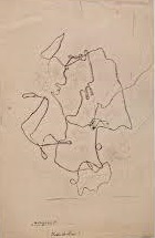 「周辺に」という1930年の作品。“中央に据えられた太陽の光を浴びて、画面をぐるりと一周する大地にさまざまな植物が根づいている。それらは特定の種の植物というよりも、光合成、養分の吸収、生長、そして交配といった、植物の生理学的機能を示す典型的な形態を表わしている。すべての植物は。すべての植物は、太陽から降り注ぐ物理的な力を生命的な力へと変換して、空へ向かって生長する。…中略…この作品は、植物が群れる地上的な領域と、太陽が存在する宇宙的な領域との間の隔たりをも主題としている。地上に根付いている植物たちは、宇宙的な領域を目指してはいるが、それに到達することは決してできない。(図録P.177)”