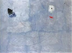 シュルレアリスムにはオートマティスムという手法があります。理性や意識による制御を極力排除し、無意識のままに言葉やイメージを表現するものです。具体的には、意識や思考を介さずに、手が勝手に動くままに書いたり描いたりするというものです。展示されていたミロの「絵画」(右側)というタイトルの油絵の大作。”刷毛による塗りむらを残した薄いモノクロームの背景に、きわめて細い線によって多義的な形を描いた(図録P.162)”作品で、画家の無意識からオートマティックに生じた形象を描き留めたもののように見えます。しかし、後年発見された画家のスケッチブックからは周到に準備され下絵があることが分かったということです。まあ、自分の作品として他人に見せるわけですから、ただ描きなぐっただけというのは、当時の画家にはそんなことできないでしょう。しかし、オートマティスムだろうがなかろうが、この大きな画面に一面に塗られた薄いブルーの塗りむらを含めて、なんと透明で美しいのでしょうか。それだけで、この作品は十分ではないかと思います。第1章の展示で見ましたが、クレーは、1909年の「座っている少女」で似たようなことを試みていました。美的な感興を頼りに即興的に色彩の斑点を描き、その中に座っている少女を読み取って、その姿を輪郭線と明暗によって浮かび上がらせたのでした。クレーの「蜜の筆跡(流れるような線)」(左側)というペン画は、無意識に手が勝手に動くままに線が引かれているように見ますが、これは意図的に何かの形をとることを避けていると思います。