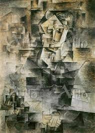 約十年後の1922年、クレーは「北方の森の神」(左側)という油彩を制作します。この作品は”ピカソの「ダニエル=ヘンリー・カーンワイラーの肖像」(右側)などを参照している。ただし、ピカソの作品がキャンバスの平面と絵画的な奥行きとの緊張感に満ちているのに対して、クレーの「北方の森の神」はごく浅い空間に閉じ込められている。ピカソの作品における直行グリッドと斜交グリッドの緊張感は、クレーの作品では正方形のなかの斜め十字架として、顕在化されるとともに記号化され、その本来の機能を失っている。代わりに、作品は題名を借りて詩的な価値を帯びる。ピカソの作品では奥行きを暗示するだけだった明暗のグラデーションは、クレーの作品では森の不気味な薄暗さとそこに秘められた自然の生命力の表現となるのだ。カーンワイラーの容貌はキュビスム的な解体の結果にすぎないが、森の神の四角と十字の眼は、近づき難さとともに神性の不十分さを暗示している。(図録P.84)”つまり、ピカソではキュビスムは画面に空間を作り出しているのに対して、クレーでは背景の雰囲気づくりという効果のためのテクニックになっているという。