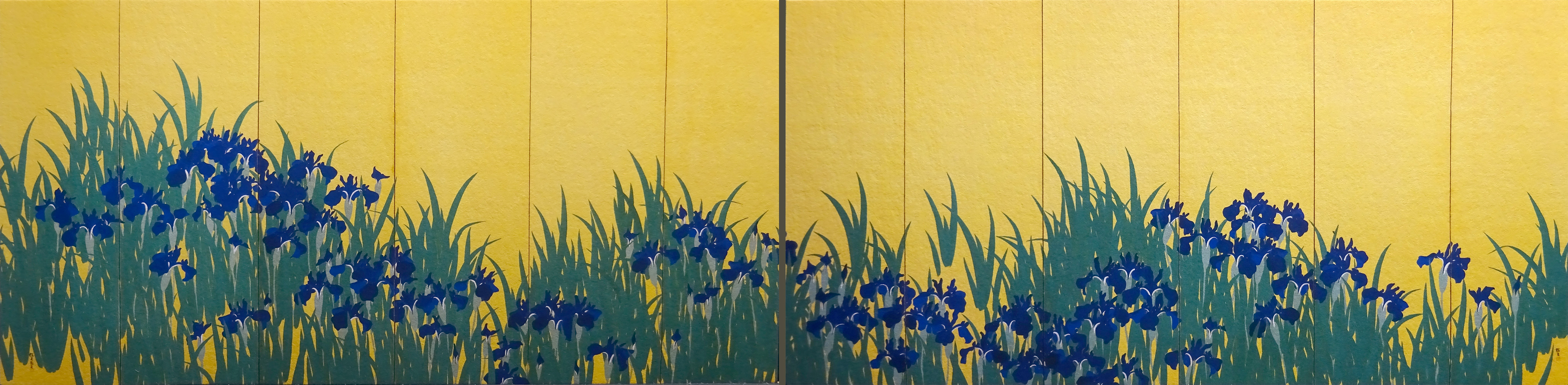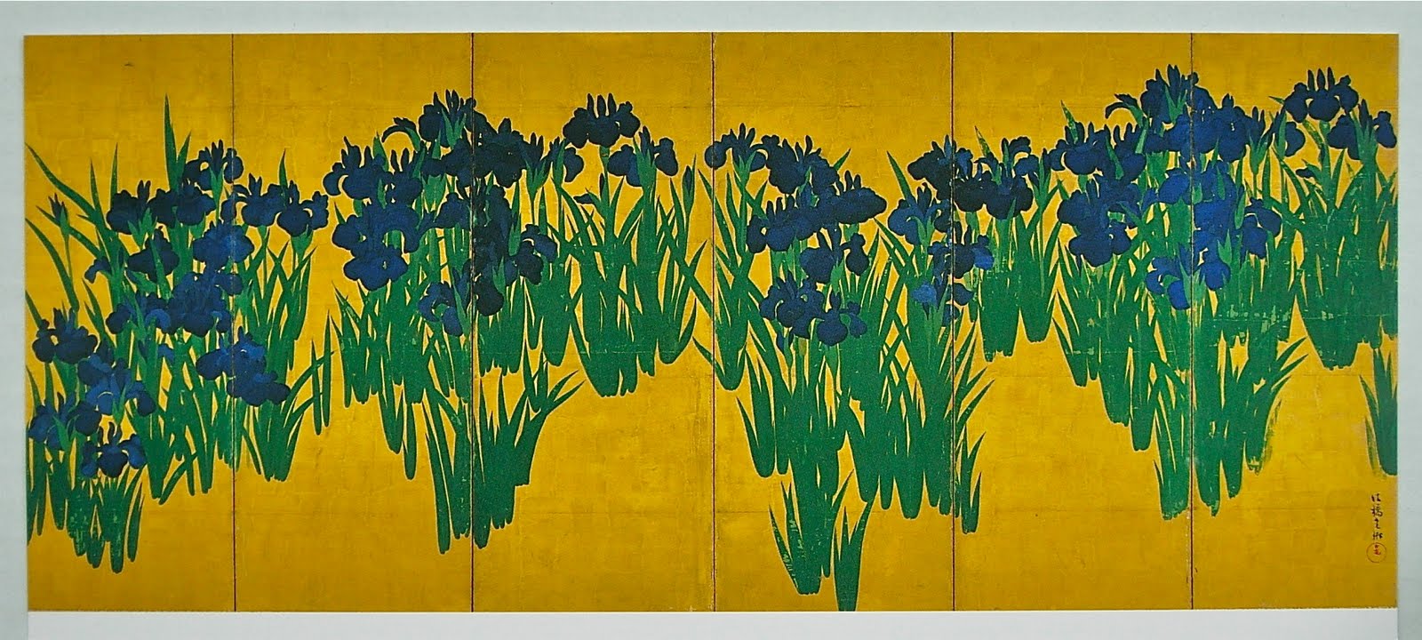 そのような木島に対して、私は人物を描いた作品については、動物や風景を描くときのようなストレートな描き方が為されずに、どこか屈曲したような操作が入ってしまって、あえてここで述べてきたような描き方をしていないのが、とても残念に思います。木島には、きっと何かの考えがあったのでしょうが、私には分かりません。同時に展示されていたスケッチ帳にあった人物スケッチに比べて、作品になっている人物の描写は、同じ人が書いたとは思えないほど屈折していて、私から見ると、意識的につまらなくしているようにしか見えませんでした。 ふたつある展示室のうち、もう一つの展示室では、この博古館のもともとコレクションであった住友家が木島に制作を依頼した屏風が展示されていました。当時の財閥の盟主の邸宅を飾る屏風ということで、豪華さを演出する効果を期待されていたのでしょうから、それに応える必要があったと思います。関西という場所柄や、豪華さということから装飾的な行き方ということで、琳派の作風に近いものになったのでしょうか、金箔を貼った輝かしい屏風面に鮮やかな色彩で描かれた花鳥風月ということで、そう見えてしまうのでしょうか。