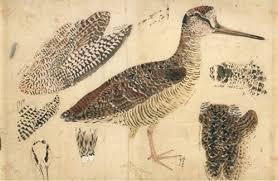 「江口君図」。これまで見てきた建築物や、この後見る鳥などの写生に比べて、人物、とくに顔が写実的でなくパターンでしかないのは、どうしてなのでしょうか。それだけ制約が厳しかったのでしょうか。また、女性がまたがっている象がリアルでないのは、応挙が実際に見ていないから、既存の作品を参考にせざるをえなかった。ということは人間に対しても、鳥のように写実的なスケッチをしていないで、既存の作品のパターンを踏んでいたのでしょうか。応挙にとって人間は写生する対象とはならなかった。あるいは写生しようと思わなかった、思えるほどのものでもなかったのかもしれないと思えてきます。ここでの展示を見ていると、人物画については、あまり革新性を感じられません。私の好みからいうと、つまらない。