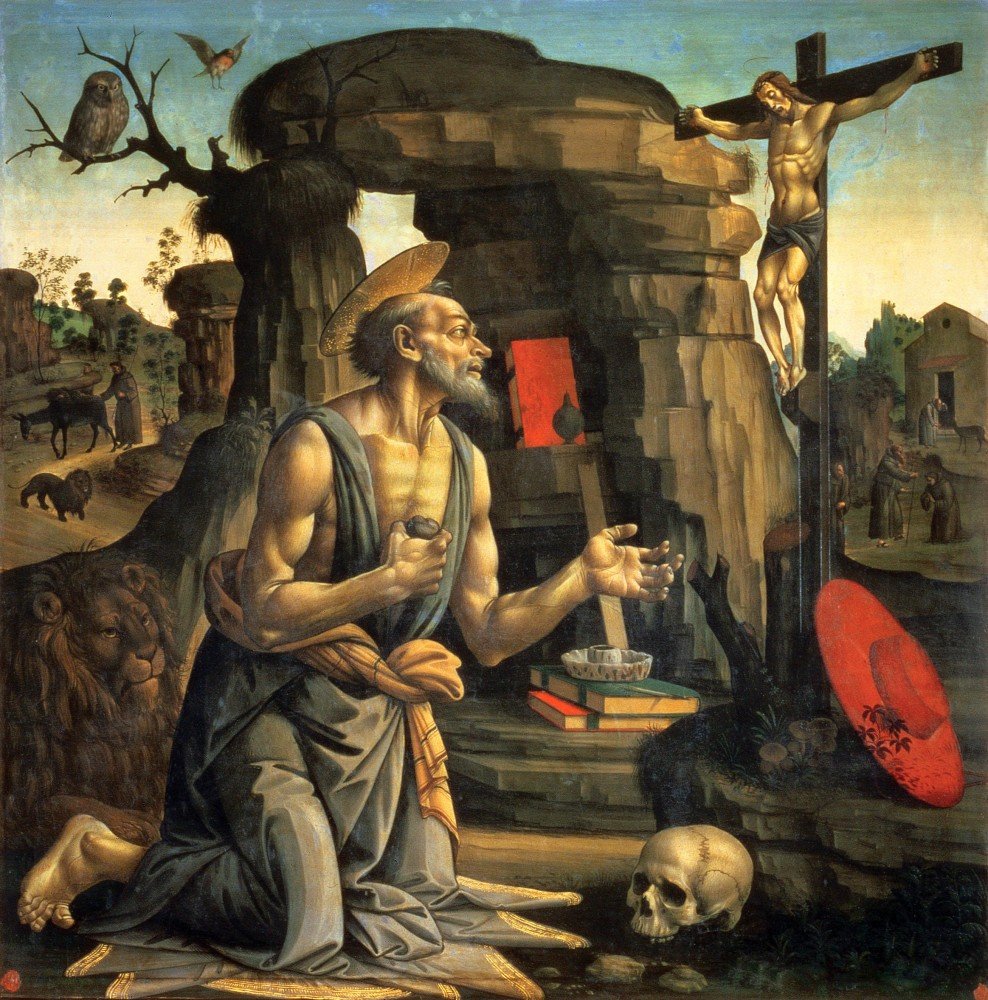 「パラスとケンタウロス」(左上図)という作品です。今回の美術展のポスターやチラシに使われた、いわば、この美術展のメインの作品です。ボッティチェリの作品の中でも「ヴィーナスの誕生」や「春」ほどではないにしろ、きわめて知名度の高い作品なのだろうと思います。ケンタウロスという半人半獣を人と並べられるようにデザインするということは大変だったのかもしれません。また聖書を題材とした絵画作品のように決まりごとに従えば内容はそれにより込められてしまうことはないわけです。だからデザインができたことで足れりということになっているように思われます。細かいところは工房の職人たちに任せて…。実際、バラスの仕草と表情がちぐはぐ、というよりも、表情まで描き込まれていないでお面のようになっています。人体のバランスも取られていない(バラスの手が長すぎる反面足が短い。また首のすわりが悪い)し、ポーズも不自然です。最初から不自然でいくという方針で描かれたのならいいのでしょうが、見ていると、デザインを考えているうちにポーズを色々といじって、人体の基本的な構造が分かっていないので途中で不自然なことに気付かず、最終的に修正できなかったというのが実際のところなのではないかと思います。このバラスとケンタウロスの並び方はイコンの中の似たパターンをそのままに使っている感じです。背景の描き方もまるで演劇の舞台装置のようで、バルトロメオ・ディ・ジョヴァンニの「砂漠で改悛する聖ヒエロニムス」に通じるところがあります。文句ばかり並べ立てているようですが、絵画作品として、どこに魅力があるのか分かりかねるというのが正直な感想です。ただし、この作品を発注したであろうメディチ家のサロンにおいて、この作品を飾り、それをネタにその場にはギリシャ神話や文化にくわしいフィチーノやピコ・デラ・ミランドーラたちがギリシャのことを雑談やら何やらで時間をつぶすには、とても便利なものだったのかもしれないということは考えられます。それは絵画作品として鑑賞するというのではなくて、飾りです。一種の職人仕事です。